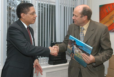 Eric Meijer (right) offering the book to Paul Comenencia (left)